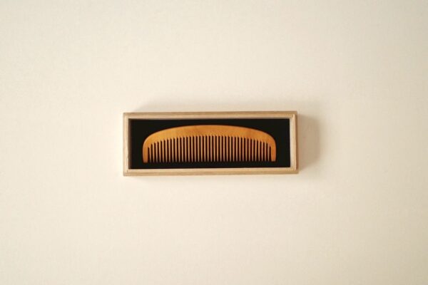 材料のつげは大変希少で鹿児島産の薩摩つげを使用し、これを乾燥して、一枚一枚丁寧に手でつくられています。使い込むほどに味わい深い飴色になっていきます。
