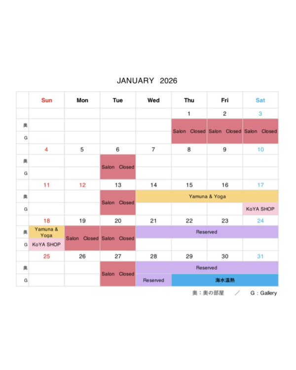 スケジュールとあわせて、それぞれの空間の個性も感じていただけたら幸いです。各プログラムのお申込みは直接セラピストにお願いいたします。どなた様もお越しいただけます。